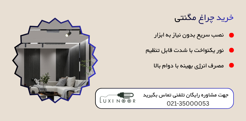 در سایت لوکسی نور میتوانید قیمت روز چراغ مگنتی را مشاهده و بهصورت آنلاین خرید کنید.